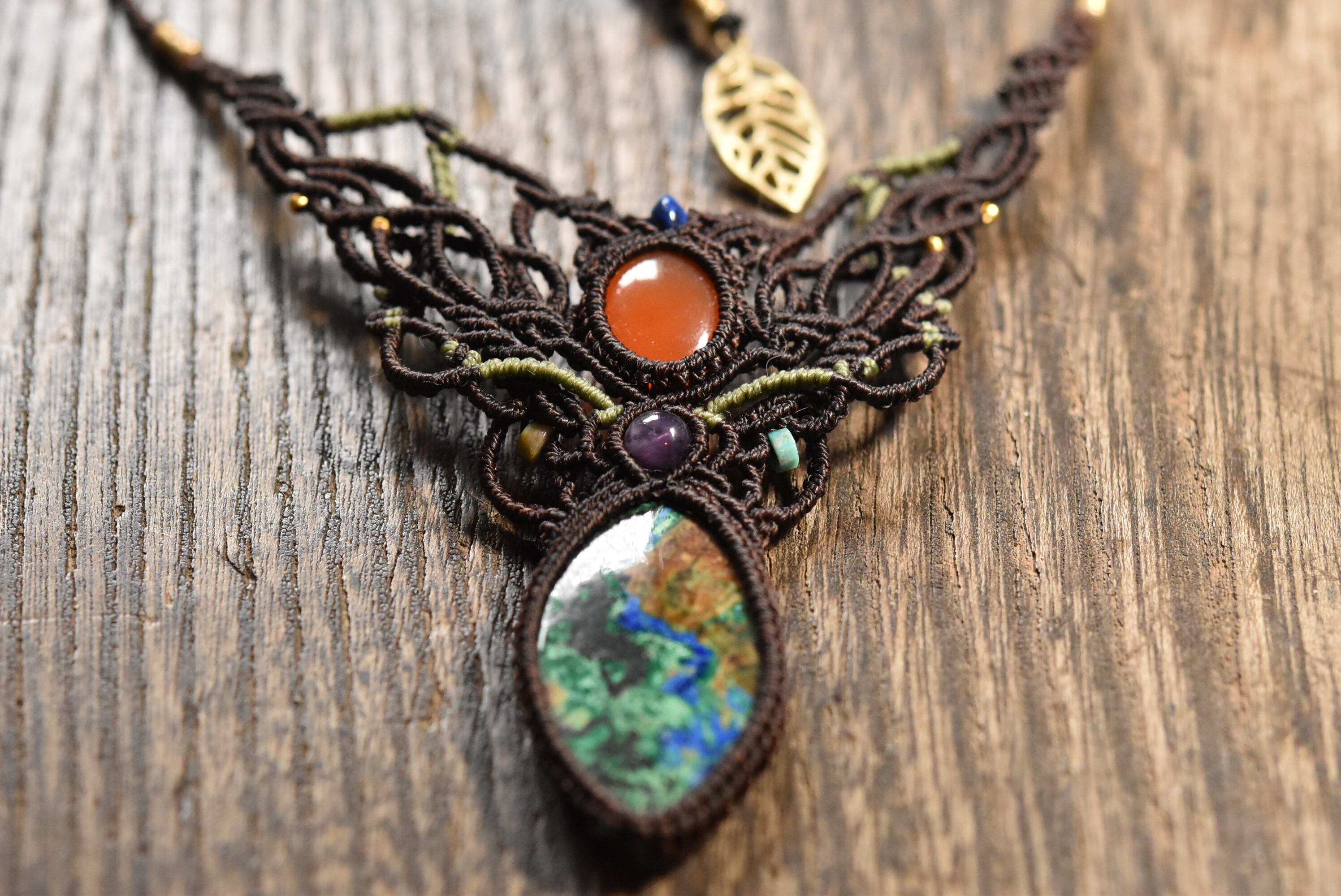 カーネリアン・アズライトマラカイトデザインネックレス